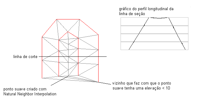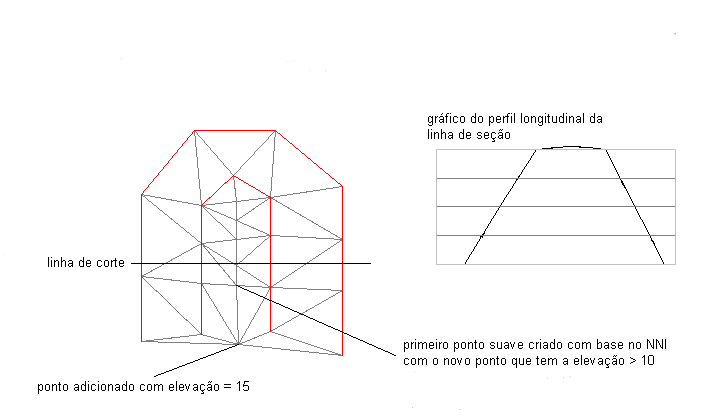 Estes resultados ocorrem porque a interpolação NNI utiliza pontos circundantes para determinar uma elevação apropriada para um novo ponto. Como todas as elevações circundantes são menores do que o triângulo plano, as elevações menores que o triângulo plano são selecionadas para os pontos adicionados, resultando na inclinação do cume.