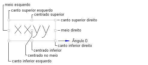 A ilustração a seguir mostra como estes pontos trabalham juntos para posicionar o componente de legenda (o texto rotacionado na ilustração):