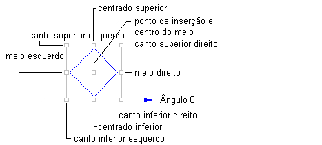 As ilustrações a seguir mostram os diferentes pontos nos componentes de legenda que podem ser utilizados como pontos de âncora ou pontos de anexação.