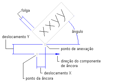 A posição do componente de legenda é definida ao especificar um componente de âncora, um ponto de âncora e um ponto de anexação. Ângulos de rotação e deslocamentos de X e Y são aplicados em relação ao componente de âncora e ponto de âncora.