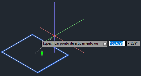 A alça verde em forma de losango ajusta a elevação ou o deslocamento vertical do armazenamento subterrâneo. O movimento desta alça está bloqueado para o eixo z.