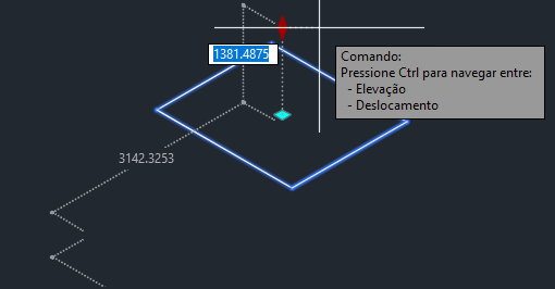 A alça azul no centro do armazenamento subterrâneo ajusta a localização horizontal da geometria atual.