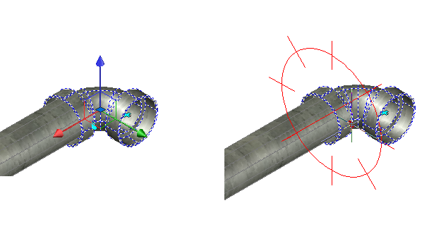 Por exemplo, na ilustração abaixo, a bússola mostra que cotovelos de 11,25, 22,5 e 90 graus estão disponíveis. Isto significa que, para o tamanho de tubulação e material selecionados, também há cotovelos de 11.25, 22.5 e 90 graus definidas para este mesmo material e diâmetro nominal na lista de peças.