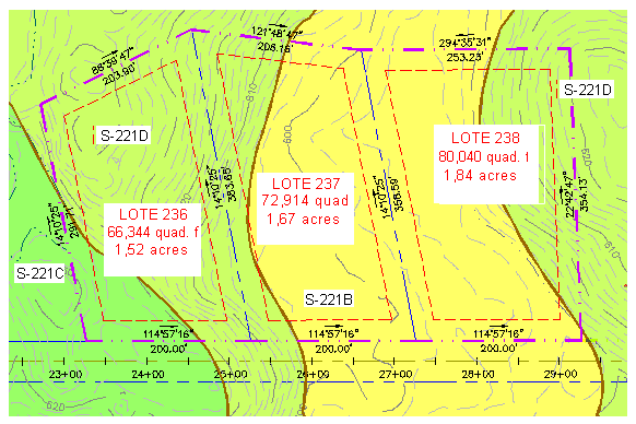Quando um alinhamento for colocado em um terreno, ele criará lotes se ele formar regiões fechadas e subdividirá os lotes existentes no terreno se houver cruzamentos nele. Aceitar a seleção de <nenhum> terreno, impede formar ou interagir com lotes ou quaisquer outros objetos.