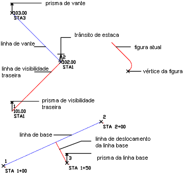 Utilize as configurações Gráficos interativos para controlar a exibição de componentes de levantamento topográfico durante a importação e entrada de dados de levantamento topográfico.