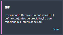 - Clique em Criar IDF para adicionar o conjunto de dados pluviométricos de IDF à Lista de precipitações.