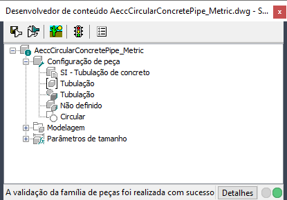 Para tubulações, o tipo de peça predefinida é sempre “tubulação”. Uma variedade de formas de tubulação pode estar disponível; por exemplo, em forma oval, elíptica e retangular. No entanto, todas elas são definidas com o mesmo tipo de peça (tubulação).