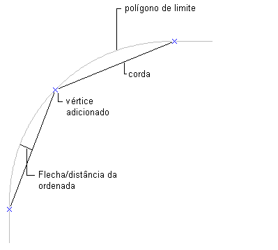 Quando definir uma linha obrigatória de uma polilinha com curvas, especifique uma distância ordenada, que é usada para aplicar a suavização de serrilhado os arcos na polilinha.