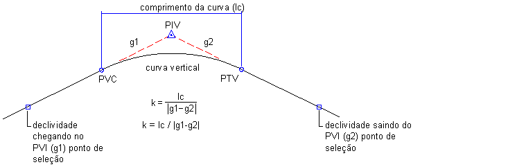 Este valor representa a distância horizontal ao longo da qual uma alteração de 1% na declividade ocorre na curva vertical. Ele expressa a forma abrupta da alteração de declividade em um único valor. Tabelas de velocidade ou outras ferramentas de projeto geralmente fornecem um valor alvo mínimo de K.