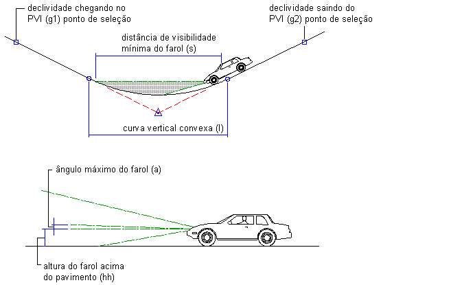 Este método de projeto para curvas verticais côncavas fornece um comprimento mínimo de curva. A curva deve ser suficientemente longa para que em condições de direção no escuro, as luzes de um veículo padrão iluminem a estrada até uma distância além da distância de parada para a velocidade projetada da viagem.