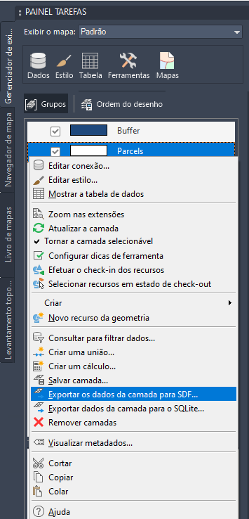 Clique com o botão direito do mouse na camada de Lotes para exportá-la.
