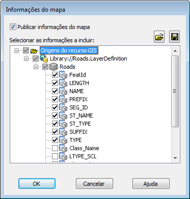 - Na caixa de diálogo Informações do mapa, expanda os itens na lista e selecione os itens Estradas e Lotes.