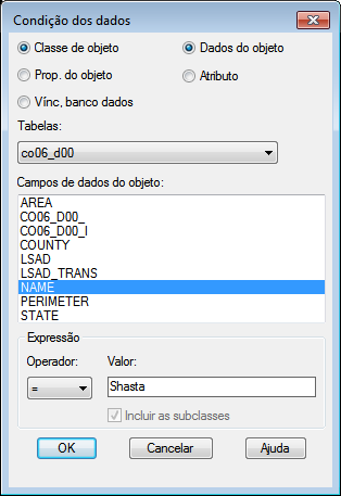 - Na caixa de diálogo Condição dos dados, selecione a opção Dados de objeto.
