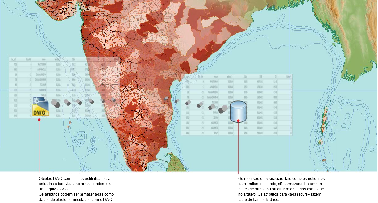 Usando a tecnologia de acesso a dados FDO de código aberto, o Conjunto de ferramentas do AutoCAD Map 3D acessa de forma nativa os dados espaciais. Para trabalhar com recursos, conecte-se ao banco de dados ou arquivo e, a seguir, selecione os conjuntos de recursos (classes de recurso) para incluir em seu mapa.