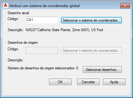É possível inserir ou selecionar o sistema de coordenadas apropriado ao mapa.