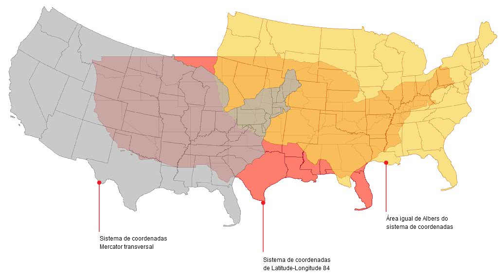 Sistemas de coordenadas determinam como o mapa é projetado em duas cotas.