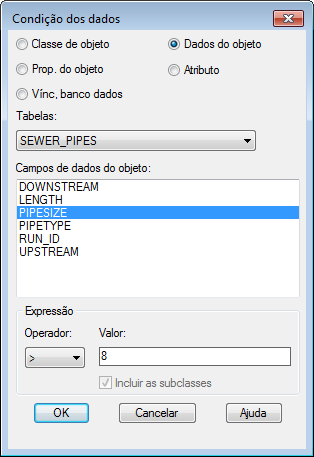 Somente as linhas de esgoto que tiverem mais de 8 polegadas de diâmetro serão exibidas.