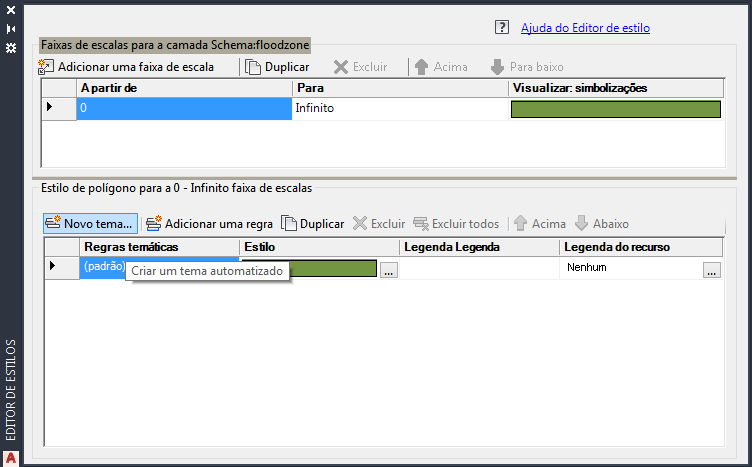 Clique em Novo tema para definir um tema para a camada de Lotes.