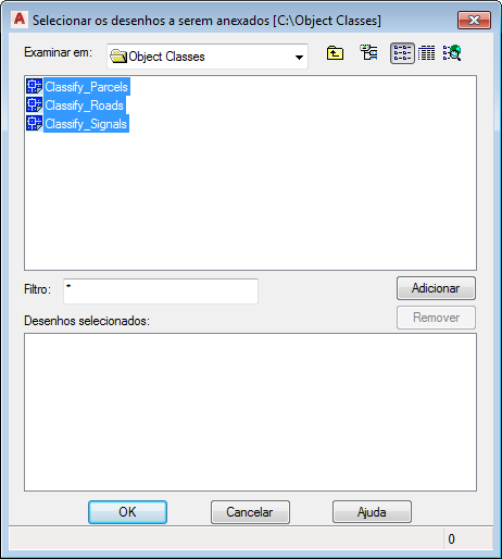 - Navegue para a pasta onde foram salvos os dados de tutorial. Mantenha pressionada a tecla Shift, clique nos seguintes desenhos, e clique em Adicionar: