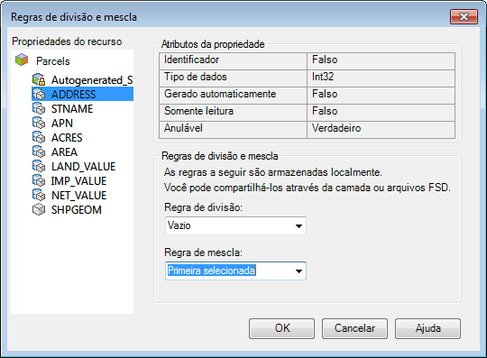 Com Dividir, é possível definir regras para a atribuição de propriedades ao dividir e mesclar recursos geoespaciais. É possível utilizar expressões para estas regras.
