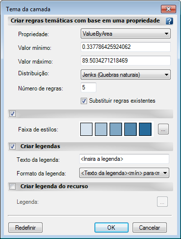 Neste exercício, é criado um tema com base na propriedade calculada definida para ValorPorArea.