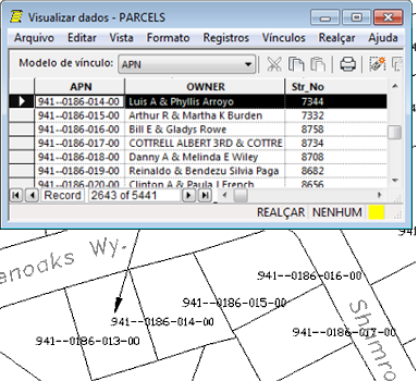 Utilize a Tabela de dados para realçar os dados para recursos específicos no mapa. O Conjunto de ferramentas do AutoCAD Map 3D mantém o vínculo entre dados espaciais e dados de atributo. Quando você atualiza os dados de atributo, as atualizações são refletidas dinamicamente no desenho.
