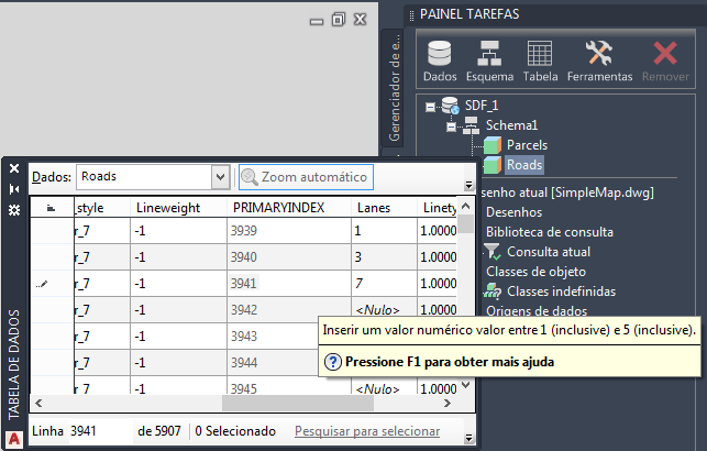 Você se conectou ao arquivo SDF criado anteriormente e acrescentou uma nova propriedade para seu esquema. Você inseriu valores para a nova propriedade na Tabela de dados.