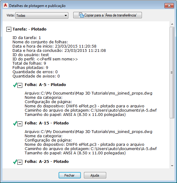 Quando o trabalho for concluído, uma mensagem o alertará sobre quaisquer erros.