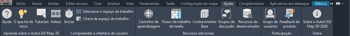 - Ajuda: procure ou pesquise nos conceitos e procedimentos que abrangem todos os aspectos do Conjunto de ferramentas do AutoCAD Map 3D.