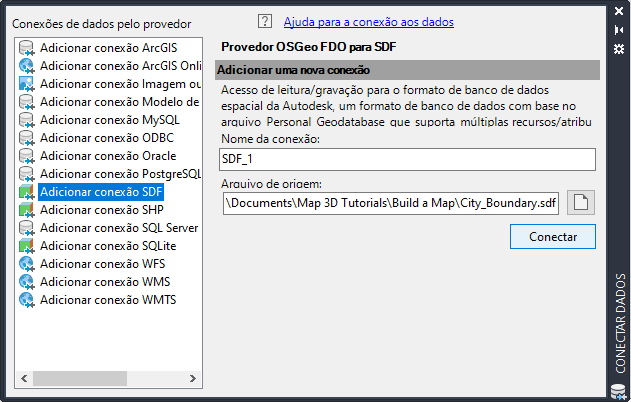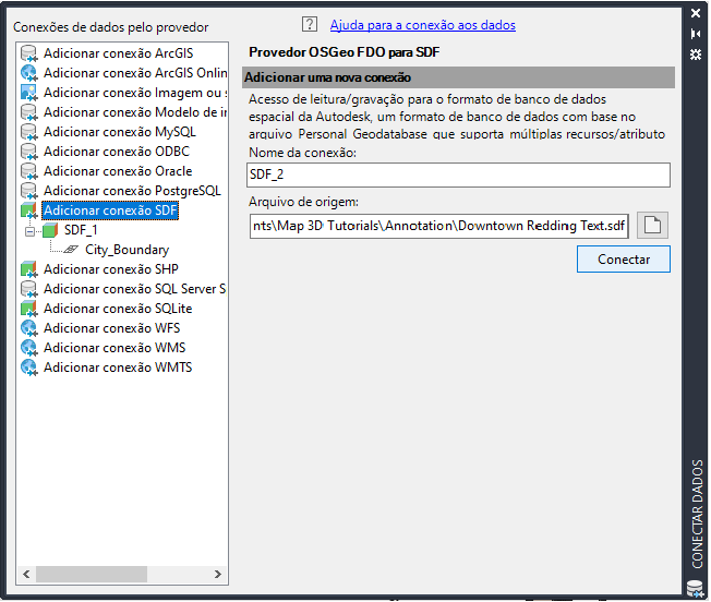 Selecione o provedor de SDF e navegue para o arquivo de amostra, CITY_BOUNDARY.SDF.