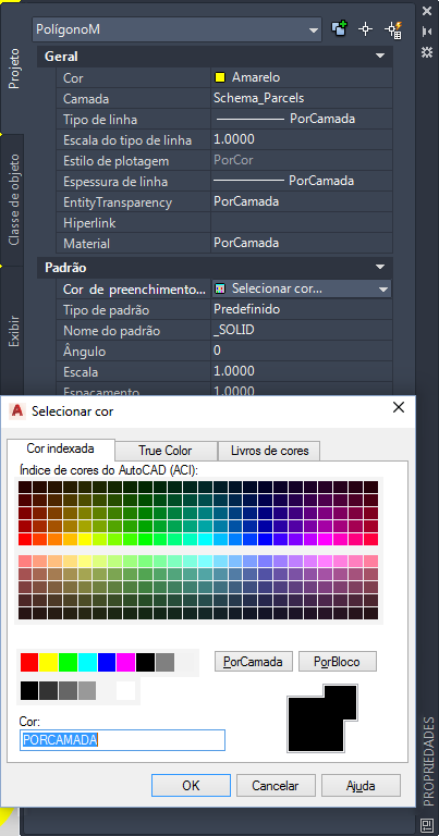 Alterar a cor de preenchimento de todos os objetos na classe de objeto Lotes usando a paleta Propriedades.
