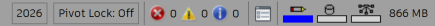 O lado esquerdo da barra de status contém um indicador de versão de arquivo e um botão para bloquear e desbloquear o ponto de giro.