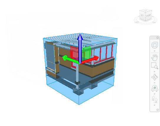 O Navisworks abre a guia de Ferramentas de corte na faixa de opções e desenha um plano de corte através do modelo na Vista da cena.
