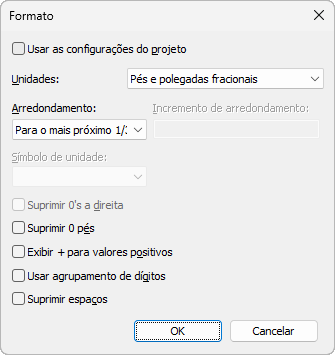 A opção Usar configurações do projeto é selecionada por padrão. Isto significa que o valor é exibido de acordo com a configuração Unidades do projeto.