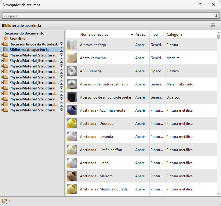 ) para os materiais. Esta prática garante que as vistas e as imagens renderizadas usem as representações de materiais mais atualizadas e de alta qualidade.