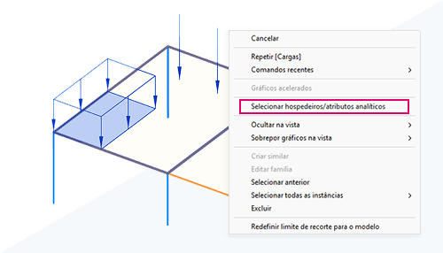 Selecione um elemento analítico para ver quais cargas e condições dos limites estão atribuídas a ele ou selecione uma carga ou condição do limite para identificar o elemento analítico ao qual ele está associado. Essa seleção bidirecional melhora a inspeção do modelo e reduz o tempo gasto no rastreamento manual de atribuições analíticas.