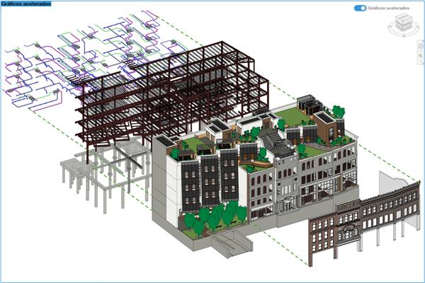 Os Gráficos acelerados apresentam uma manipulação aprimorada de modelos vinculados em vistas aceleradas, bem como uma exibição e coordenação melhoradas.