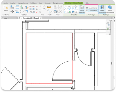 Agora é possível inverter a orientação da parede antes da colocação ao usar Criar paredes por ambiente ou Criar paredes por segmento.