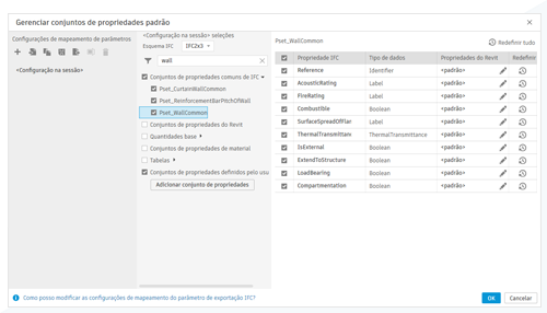 Mapeie parâmetros para conjuntos de propriedades IFC diretamente no fluxo de trabalho de exportação. Crie e gerencie mapeamentos de propriedades IFC padrão ou personalizados, melhorando o controle sobre a saída de dados IFC.