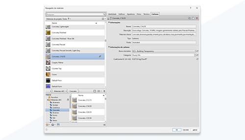 Os parâmetros de carbono são suportados como recursos em materiais do Revit.