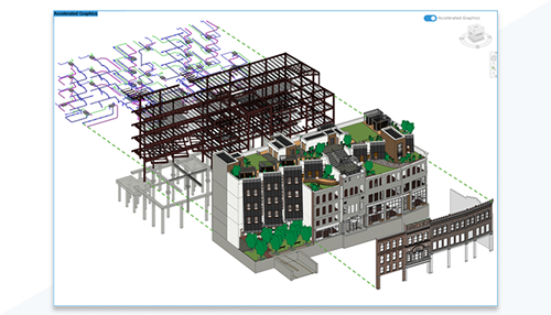 Os Gráficos acelerados apresentam uma manipulação aprimorada de modelos vinculados em vistas aceleradas, bem como uma exibição e coordenação melhoradas.