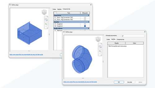 Consulte Editar uma peça de fabricação e Propriedades de instância das peças de fabricação MEP.