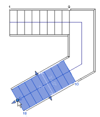 | 5 | Arraste o controle quadrado no degrau em leque para mover o degrau. Os degraus em leque são adicionados ou removidos do degrau em leque no lance da escada para manter a altura original da escada. |