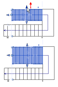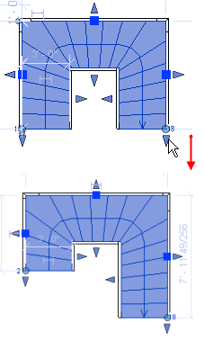 | 4 | Arraste o controle de seta para alterar o comprimento do patamar onde ele está conectado a um degrau. Também é possível usar este controle nas arestas do patamar para redimensionar o patamar. |