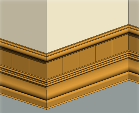 Utilize a ferramenta Extrusão por percurso para adicionar uma placa base, molde de coroa ou outro tipo de projeção horizontal ou vertical decorativa em uma parede. Você pode adicionar uma extrusão por percurso de parede para uma parede de qualquer vista 3D ou de elevação.