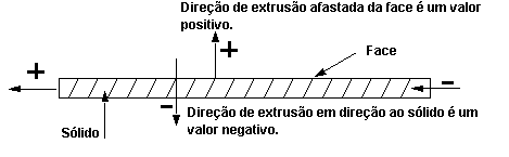 A extrusão de um telhado pode se estender em qualquer direção, positiva ou negativa, ao longo da perpendicular plana à face de um componente sólido (como uma parede).