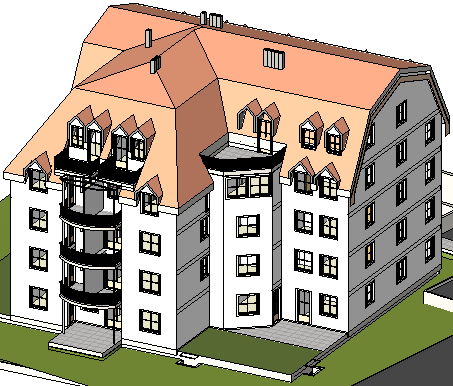 Você pode criar uma vidraça inclinada usando o método de perímetro ou de extrusão. A vidraça inclinada tem uma ou mais linhas de definição de inclinação e podem se unir com paredes cortina e tipos básicos de paredes.