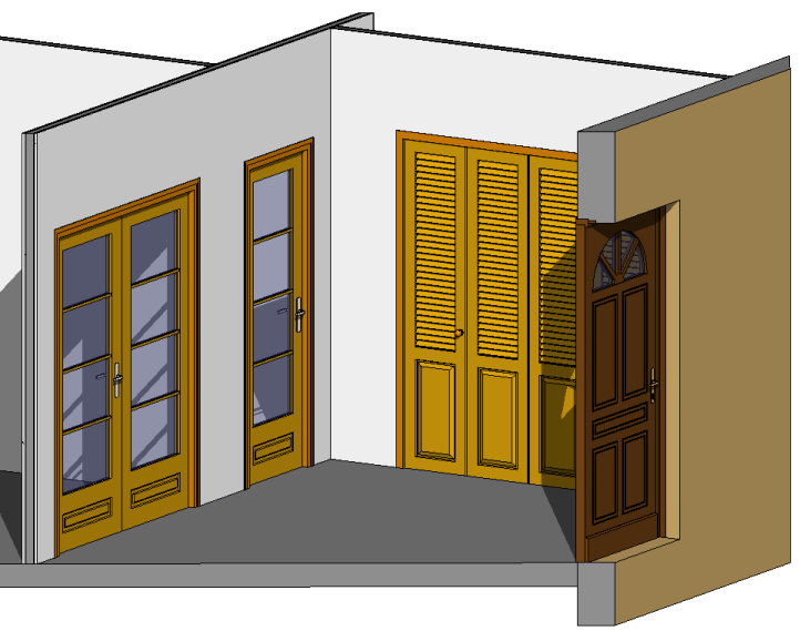 As portas são componentes hospedados que podem ser adicionados à qualquer tipo de parede. As portas podem ser criadas em vistas planas, corte, elevação ou 3D.