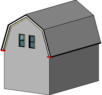 Sofitos selecionados no modelo com um telhado com duas inclinações diferentes em cada lado