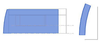 A imagem a seguir mostra uma parede no local em uma vista de elevação e em uma vista de planta. Outra geometria no modelo é exibida em meio-tom.